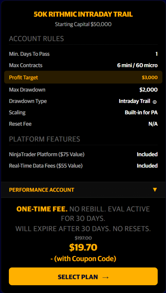 Only $19.70 for a $50k Evaluation Account!